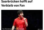 虽然樊振东下半年才来到德国,但是很多球迷已经开始担心他一年的合同结束后就不再续约。萨尔布吕肯负责人表示,樊振东拥有超级巨星应有的自由,合同最后一天告诉我们不续约,那就不续约;合同最后一天告诉我们续约,我们会全力留住他!