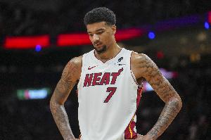 本场比赛,热火中锋韦尔攻防两端表现出色,打了34分钟15投11中,三分7中5、罚球2中1砍下28分19篮板1抢断,正负值-6。