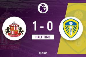 半场结束,桑德兰1-0利兹联。