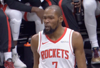 比赛战至第二节,在一次进攻中,沃尔夫出手三分,杜兰特在篮下与克拉克斯顿卡位拼抢篮板,但沃尔夫投丢后,球直接砸向了杜兰特的脸,杜兰特惨遭爆头后,冲着沃尔夫怒喷道:“你投的什么垃圾玩意,沃尔夫?”