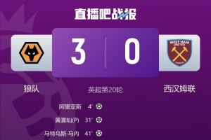 体育资讯1月4日讯 英超第20轮,狼队主场3-0击败西汉姆联,获本赛季联赛首胜。