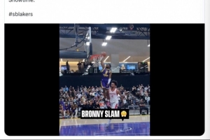 布朗尼反击一条龙单臂劈扣!老爹詹姆斯:上面的空气与众不同啊!