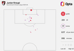 Opta数据统计,伯恩茅斯前锋克鲁皮本赛季在英超中完成17次射门,打进6球,平均每2.8次射门便攻入1球,成为本赛季联赛打进至少5球的球员中效率最高的一位。