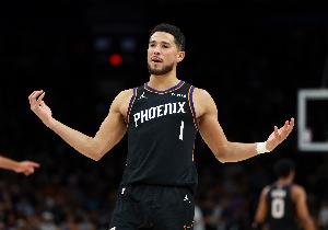 本场比赛,太阳球星布克表现一般,虽然全能但进攻效率太低,在40分钟的时间里,投篮19中6,三分球5中1,罚球11中11,拿下24分9篮板9助攻1抢断的数据,有4次失误。